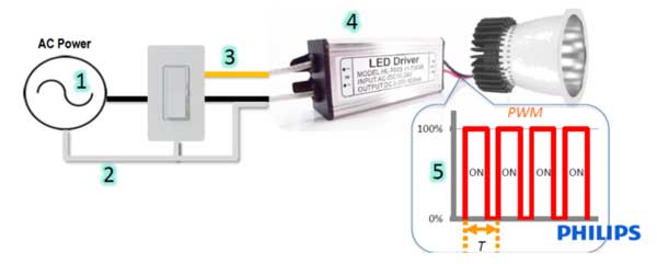 LED頻閃效應由多種因素決定,其中主要的幾個來源是:電壓源的變化(噪聲)、外部耦合噪聲、調光相位不穩定、驅動不穩定、驅動方式。