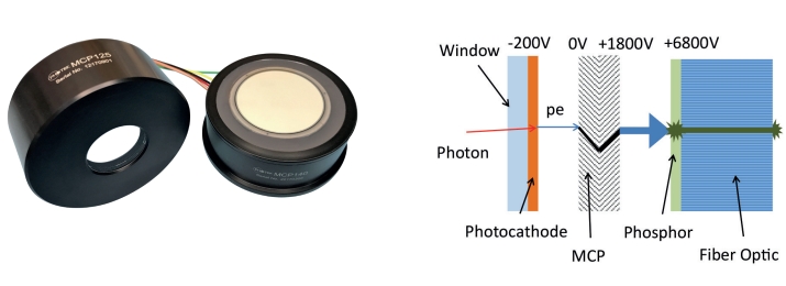 MCP像增強(qiáng)器:英國(guó)Photek 是一家生產(chǎn)像增強(qiáng)器、超快 PMT、條紋相機(jī)管、真空粒子探測(cè)器以及單光子計(jì)數(shù)相機(jī)系統(tǒng)的廠(chǎng)家。其像增強(qiáng)器最大口徑可達(dá)150mm,*多可做到 3級(jí)MCP 連用。