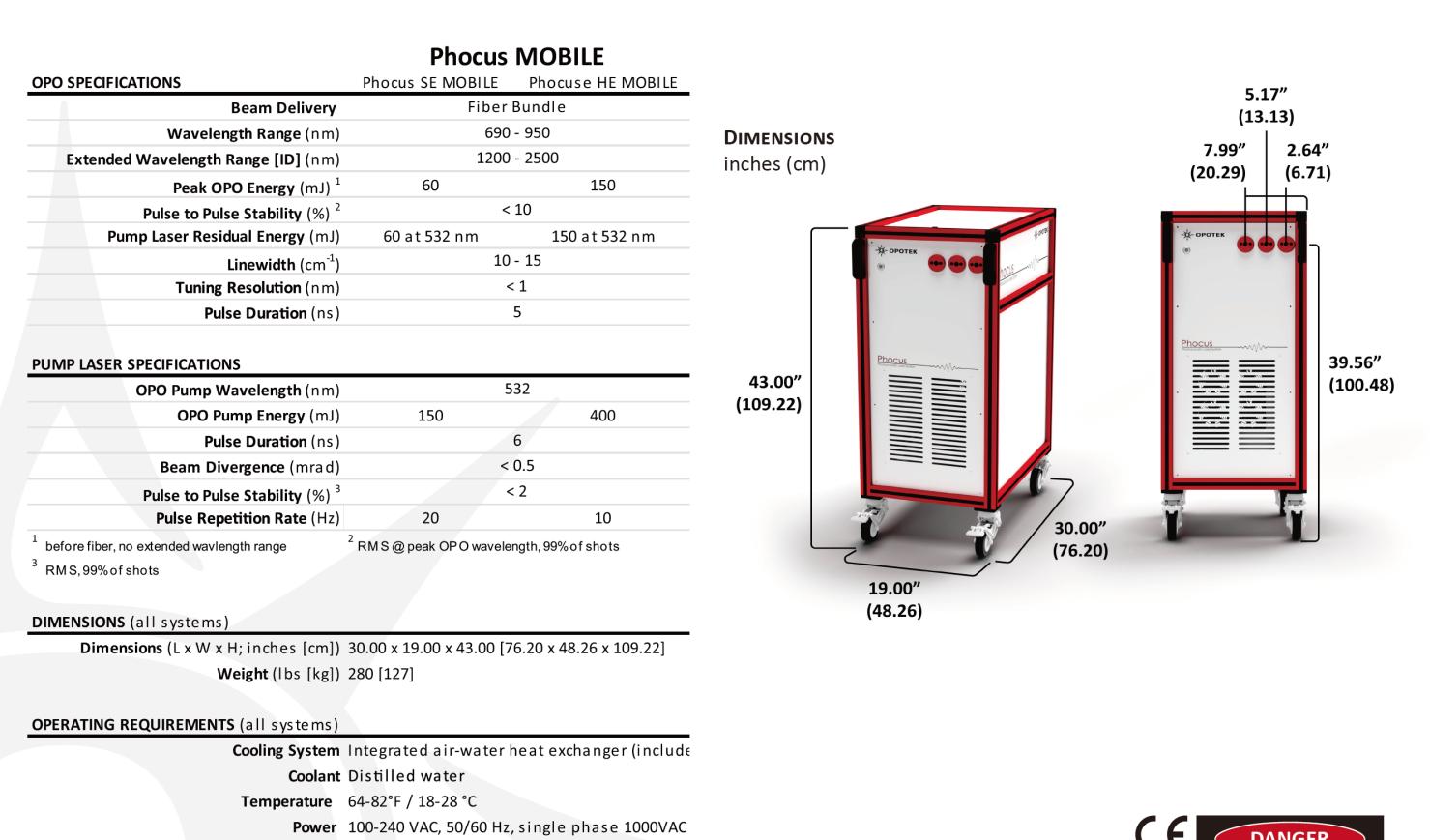 Phocus 為專門為光聲光譜設計的 OPO 激光器。Phocus 采用環形腔、I 類位相匹配,具備較高的近紅外轉換效率,滿足生物組織光聲成像的需求。Phocus Mobile 為一體式可移動高能量光聲光源,具備安全自鎖、光纖輸出等功能,可滿足臨床需求;Phocus Benchtop/ Phocus Inline 則更為適合實驗室使用或系統集成。