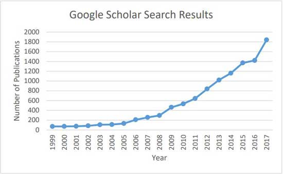 圖1:每年提及“氮空位”和“金剛石”的出版物總數(shù)(Google Scholar)。