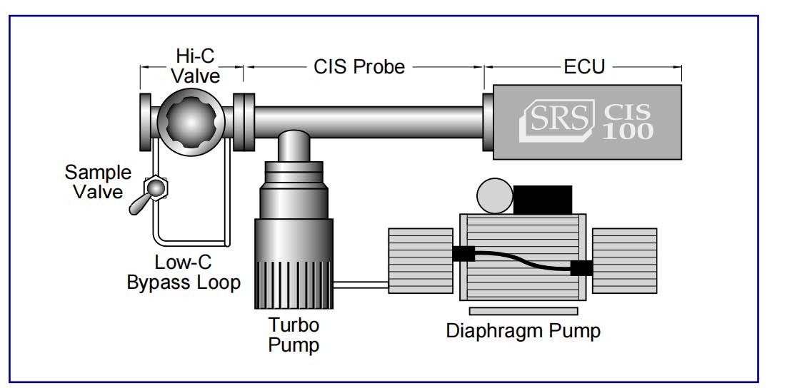 CIS分析儀可以直接取樣氣體高達約10−2Torr壓力水平。壓力上限是由離子中性碰撞的平均自由程的減少來設定的,這種碰撞發生在較高的壓力下,并導致離子的顯著散射和靈敏度的降低。然而,操作并不局限于對壓力低于10−2Torr時的氣體進行分析。更高的氣體壓力可以通過分壓進氣系統(PPR)來取樣,就像它用傳統的RGAs所做的一樣。一個與CIS分析儀的電導率相匹配的減壓氣體入口系統,將允許傳感器采樣高達10 Torr的氣體壓力。在PPR系統的情況下,所付出的代價是降低采樣速度,在樣品入口的氣體混合物的分流,以及在電離器上可能產生的記憶效應。