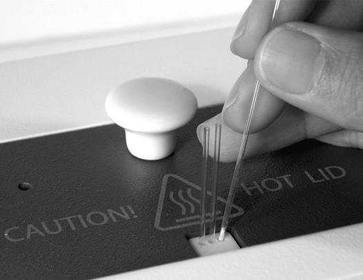 在將任何毛細管放入樣品槽之前,確保OptiMelt熔點分析儀已接電和設置初始溫度低于樣品預期熔點溫度。