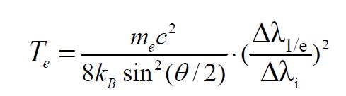 湯姆遜散射角度 Theta=90度;me是電子質量,c是光速,kB是玻爾茲曼常數,公式右邊分母下面: 是激光的波長 532nm;分子是譜線展寬,不過是1/e展寬