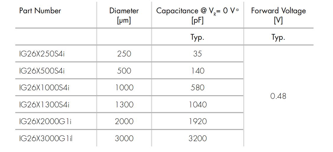 IG26系列探測器是全譜段的PIN結構的二極管,其截止波長是2.6um. 這個探測器設計用于光譜測量和輻射計量應用。它在提供優異的分流電阻時,還可以帶來寬譜范圍內的優良的響應。