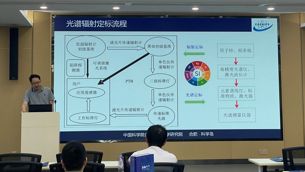 合肥專場上中國科學院安徽光學精密機械研究所李健軍做光電測量儀器實驗室定標技術和應用報告,為與會觀眾講解光電測量儀器在工業、農業、林業等領域的應用,并提出高精度光電檢測和校準是定量應用的前提,重點介紹了高精度黑體輻射源、相對光譜響應度、基于標準傳遞探測器定標溯源鏈路等校準系統,報告內容豐富,精彩紛呈。