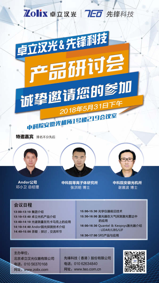 繼2018年4月卓立漢光聯合先鋒科技舉辦第一屆光電行業產品巡回研討會后,第二屆研討會來到中國科學院安徽光機所,具體會議詳情詳見如下綜述,各位敬請期待。