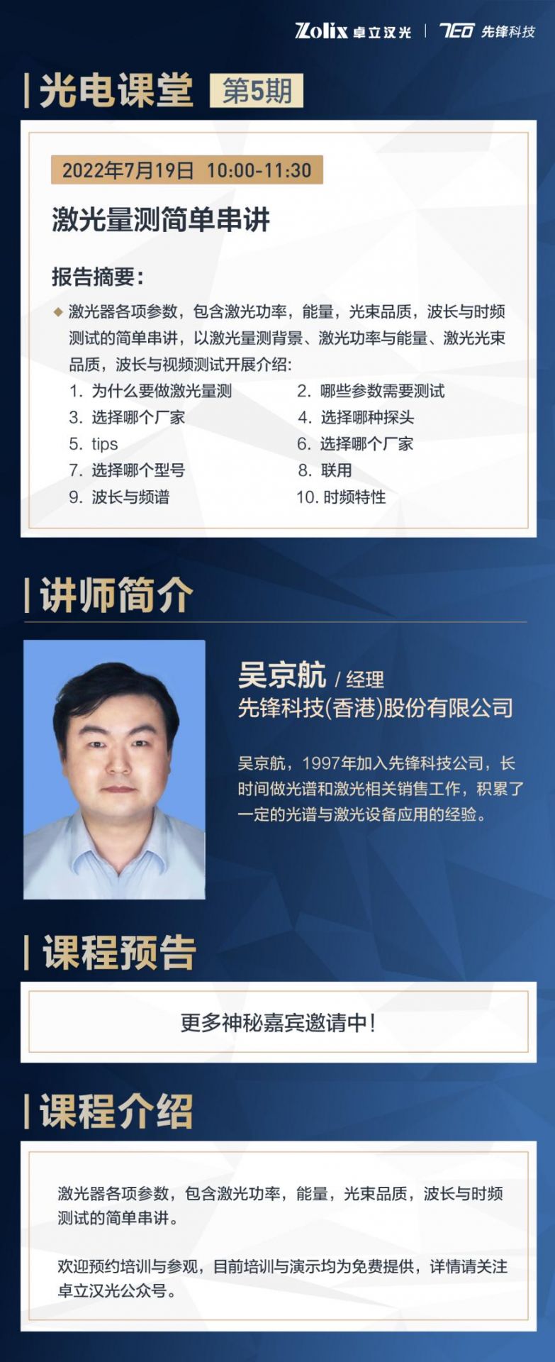 為多方位展現(xiàn)光電儀器研制領(lǐng)域的最新成果,使客戶(hù)進(jìn)一步了解和熟悉光電產(chǎn)品及應(yīng)用,卓立漢光&先鋒科技秉持“優(yōu)質(zhì)服務(wù)”的理念,特別策劃制作《光電課堂》網(wǎng)絡(luò)專(zhuān)題直播課。歡迎預(yù)約培訓(xùn)與參觀,目前培訓(xùn)與演示均為免費(fèi)提供,詳情請(qǐng)關(guān)注先鋒公眾號(hào)。