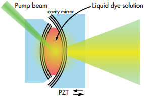 圖1:充滿染料的微腔,包含兩個(gè)高反射率球面介質(zhì)膜反射鏡。
