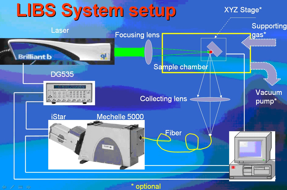 LIBS純光學(xué)技術(shù),這意味著實驗裝置和樣品間只有光學(xué)接觸,系統(tǒng)可以很方便的跟其它光學(xué)裝置(望遠(yuǎn)鏡、顯微鏡、光纖),實現(xiàn)微區(qū)測量、遠(yuǎn)程測量甚至遙測;