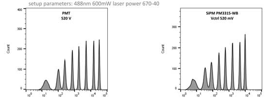 圖一:Comparison of PMT vs. SiPM TIA Module-CST beads