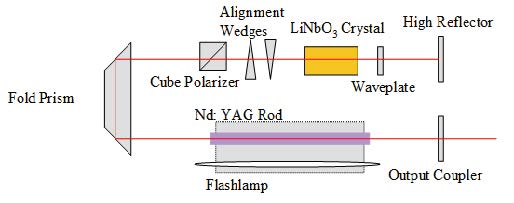 折疊腔結(jié)構(gòu)固體調(diào)Q 激光器示意圖