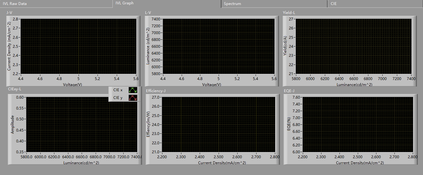 1、系統主要測試參數- IVL曲線繪制:IV曲線、電流密度、電流-亮度曲線、光效曲線、電流效率、流明效率