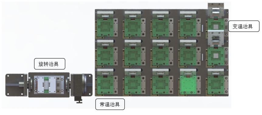 - 同時配備多組治具,支持常溫、高低溫、不同角度的多種需求混合測試。