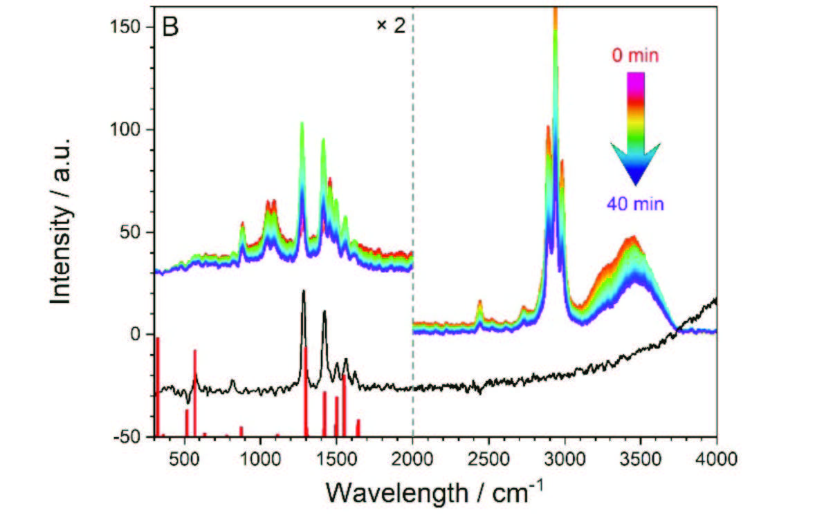 圖 MOF 拉曼光譜隨時間變化曲線,采用平面波密度泛函理論計算