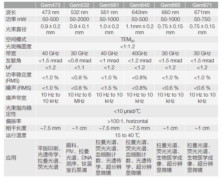 | Gem660 | 采用創新的零壓力腔型,高光束質量,結構緊湊。 | 熒光成像、眼科、生物醫學成像、拉曼光譜、顯微鏡、軍用激光、STED顯微鏡DNA測序、光刻、光遺傳學 |