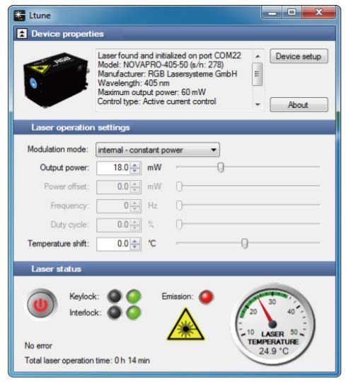 Lambda Beam 系列提供兩種控制器,分別為PowerController 與Power Box,適合分立式與直插式控制。Ltune 軟件可通過PC 監測、控制激光器的狀態。