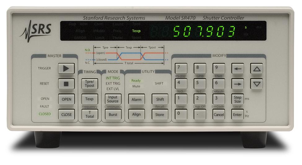 SR470激光快門控制器可以給快門頭發(fā)出信號(hào),達(dá)到控制快門開合的目的。曝光時(shí)間可以靈活設(shè)置,在0.1ms 的分辨率下,時(shí)間設(shè)置范圍為:4ms 到10000s ;可以設(shè)置先曝光和后曝光的時(shí)間;8 位數(shù)LED 顯示器顯示目前的參數(shù)為秒或是赫茲,時(shí)間可以精確到100ppm。SR470激光快門控制器具有多種觸發(fā)方式:內(nèi)觸發(fā)、外觸發(fā)及面板操作。SR470具有GPIB、RS232及以太網(wǎng)等接口,支持遠(yuǎn)程控制。所有的設(shè)備功能都可以通過任何一個(gè)接口進(jìn)行控制和讀取。SR470 快門控制系統(tǒng)具有自動(dòng)檢測(cè)功能,若快門發(fā)生故障,可以通過顯示屏看到故障提示或聽到故障報(bào)警,能幫助您及時(shí)發(fā)現(xiàn)并排除故障,提高了實(shí)驗(yàn)的可靠性。