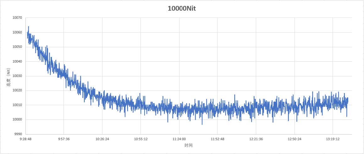 設置亮度10000Nit輸出4小時內光源穩定性:99.32%