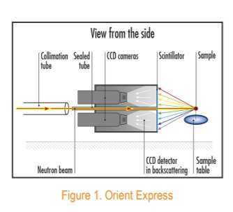 早期搭建的經典勞厄相機與PSEL合作完成,通過使用膠片和暗室顯影設備搭建的Orient-Express,主要應用于快速檢查晶體質量和定向。它由兩個PSEL相機組成,觀察一個平面閃爍體。入射的白中子束通過相機后,在反向散射位置撞擊樣品。衍射圖樣從相機機中讀出,完成拼接,顯示在電腦屏幕上。曝光時間一般在幾秒鐘到幾分鐘之間,大約在5年前,這套系統升級為CCD探測器,具備更高的通訊速度。