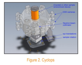 基于Orient-Express的成功,升級版的Cyclops被搭建出來。它由16個雙倍高度八邊形排列的相機組成。使相機聚焦在圓柱閃爍體上,并將樣品置于圓柱體中心。保證留出足夠大的樣品空間的同時又能夠容納各種樣品環境控制設備。